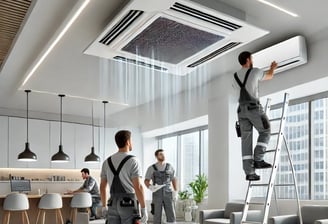Serviços de limpeza e desinfecção para ar condicionado em ambientes residenciais e comerciais.
